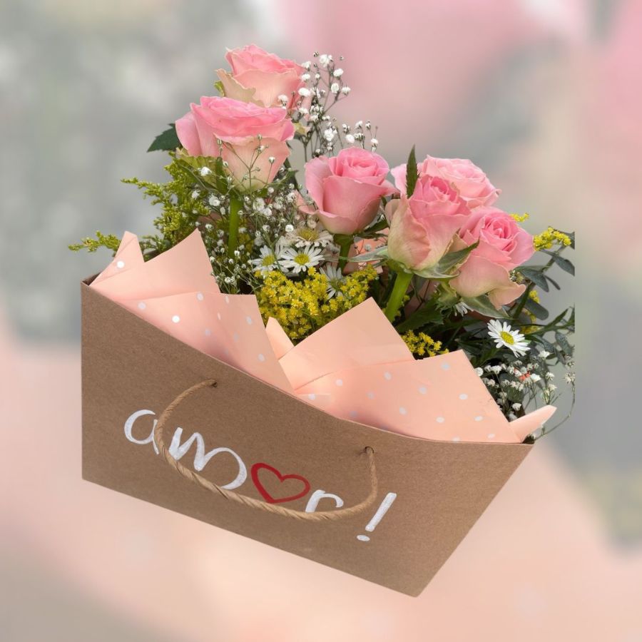 Bolsa de regalo con 12 rosas color rosa