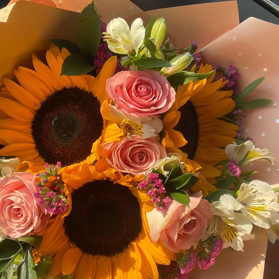 Ramo con girasoles y rosas